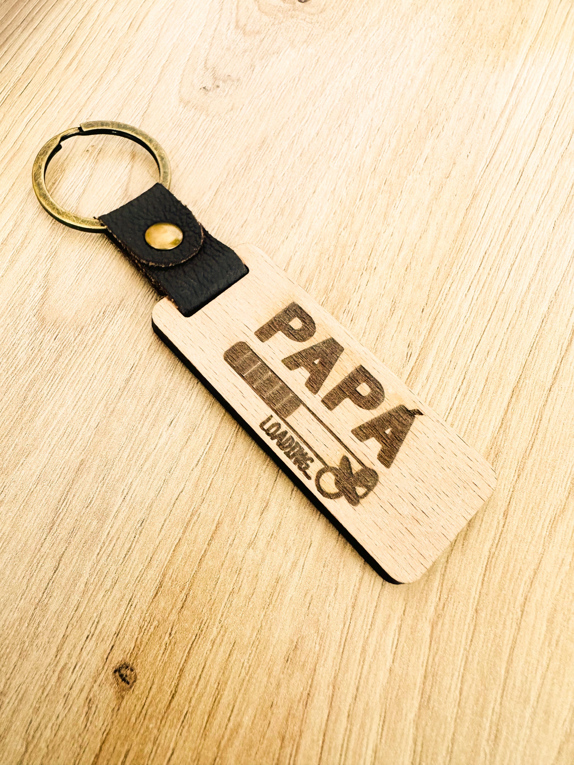 👣 2. Llavero de madera grabado “Papá Loading”