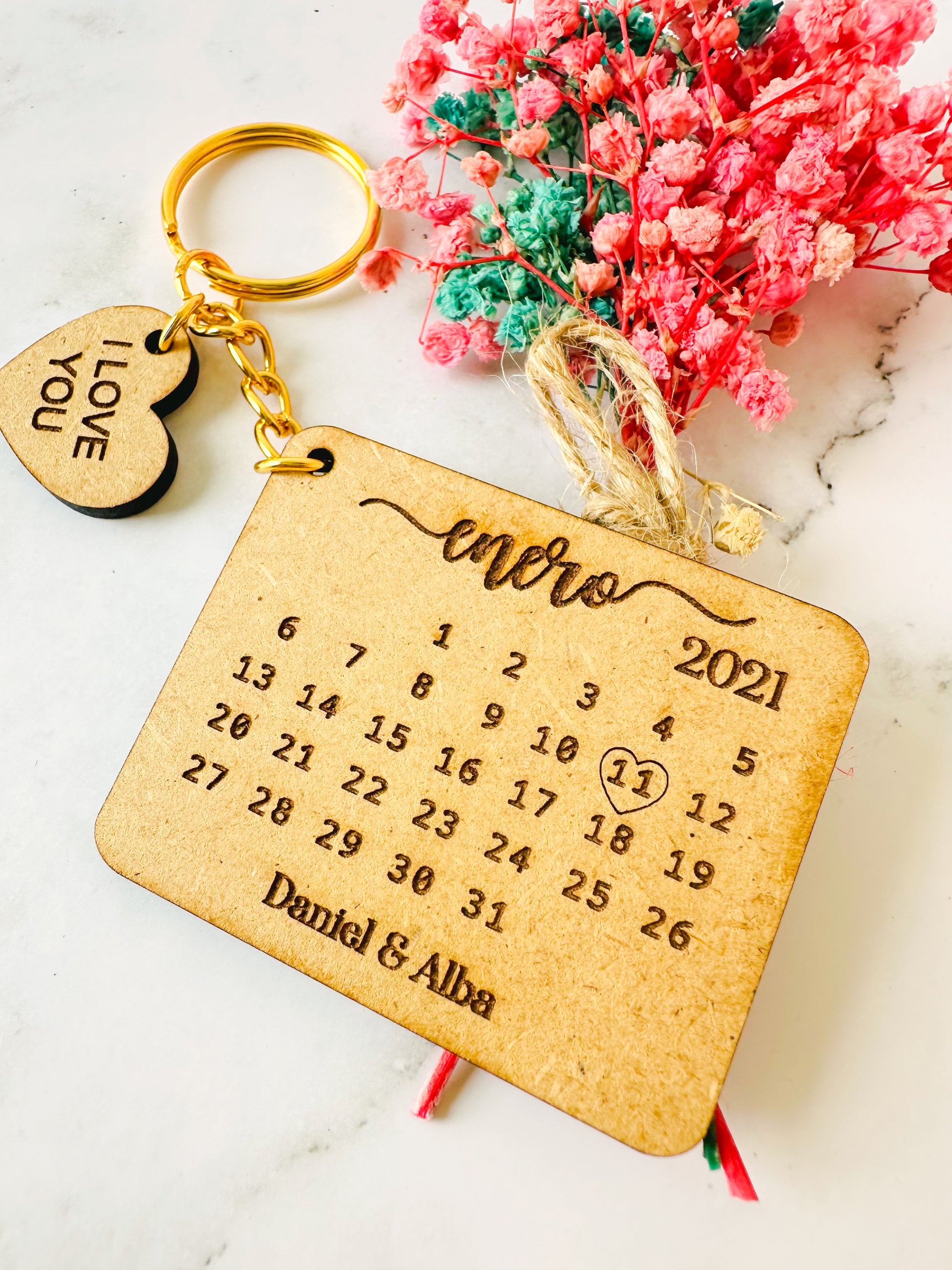 Con vuestra fecha especial marcada con un corazón y los nombres de los dos. Un detalle único que llevaréis siempre encima.