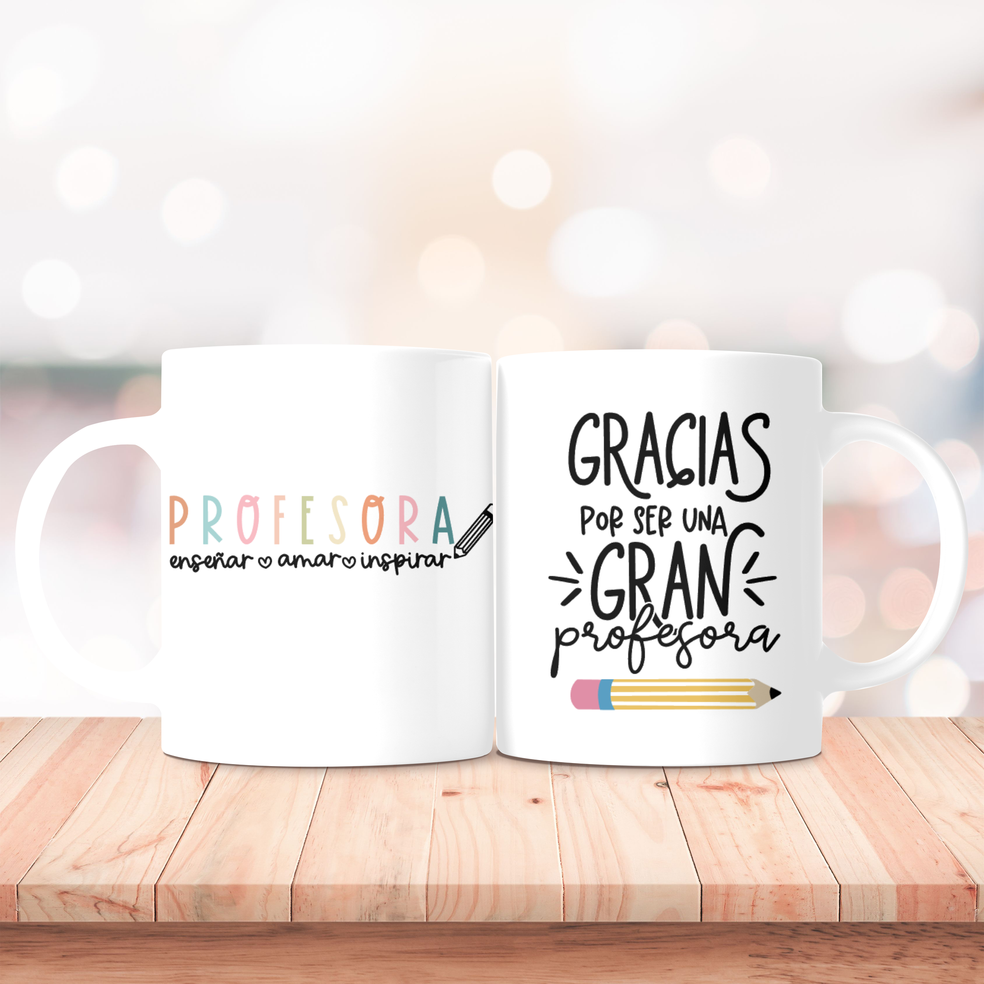 Con los diseños “Enseñar • Amar • Inspirar” y “Profesora”. Ideal para acompañarla en sus mañanas de cole.